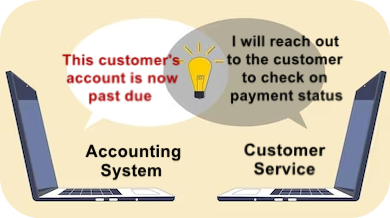 A lighting manufacturer links their accounting and CRM system together. When an account if outside a 120 day payment due window, the customer service department receives an e-mail notification with details. A flag is placed in the CRM system putting the account on credit hold and the assigned sales rep receives an e-mail to keep them in the loop.